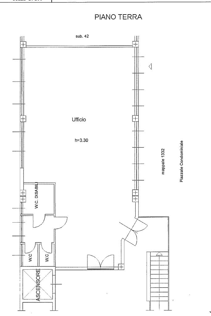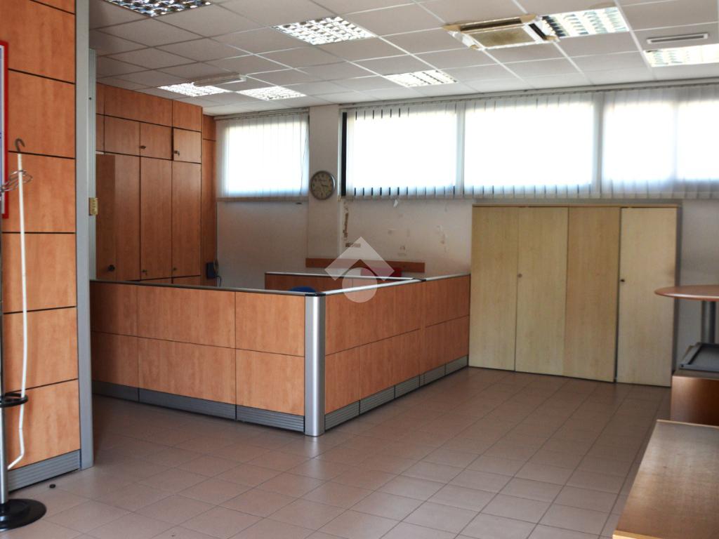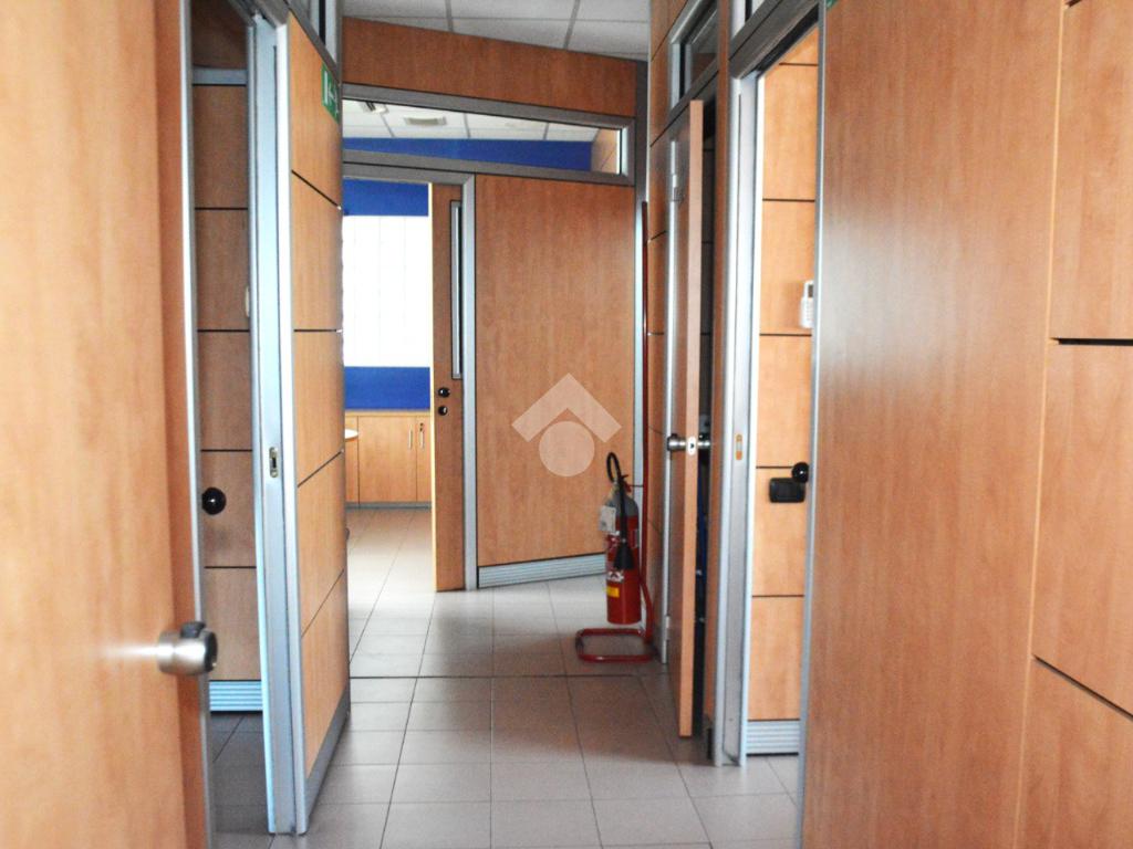 che garantisce visibilità e luce corridoio conduce a tre vani separati, ideali per uffici privati o sale riunioni. La struttura è dotata di tre bagni, uno dei quali accessibile a persone con disabilità, con l'offerta due stanze tecniche e un magazzino, perfetti per archiviazione o supporto logistico. All'esterno, un posto auto e un piazzale offrono comodi spazi di parcheggio e manovra. Questa soluzione è ideale per chi cerca funzionalità e praticità in una posizione strategica.